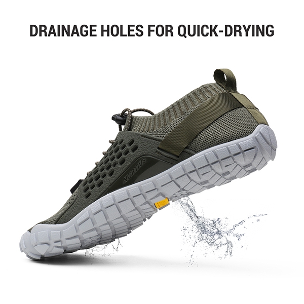 Nature lovers can't get enough of our men's water shoes. Find your stride in the lake, canoeing, or go for a swim. Protect your skin with NORTIV 8 men's water shoes. Our water shoes feature rubber pods for ultimate shock absorption. Not to mention, ten drainage holes for ventilation beyond compare. Add that to a comfortable feel and Multi-Directional Traction (MDT) for high-level grip and you have exceptional quick-drying NORTIV 8 water shoes for men.